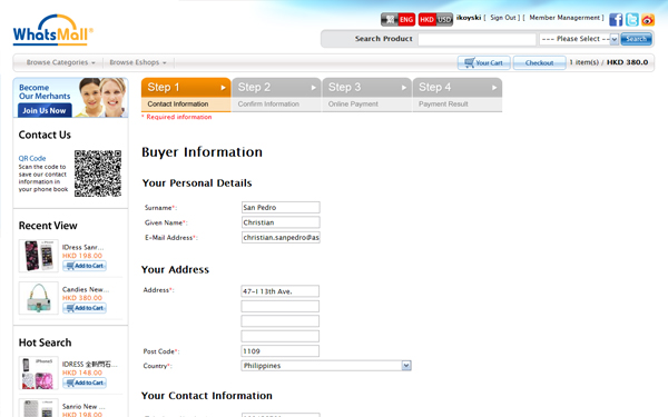 The default delivery information will be the registered information. If you would like to ship to another delivery address, input the address as shown below.
