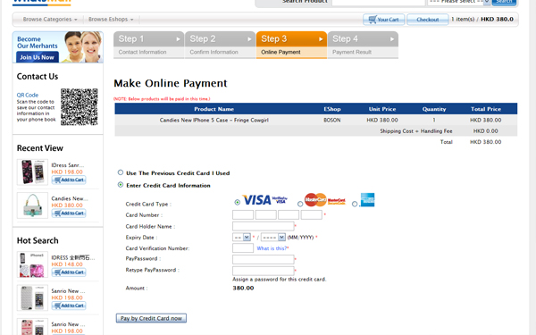 **If your card-issuing bank supports 3D secure payment authentication, you will be redirected to VISA/ Master/other Card Association page. Please fill in the information accordingly. Your payment may be failed if you have not yet registered for such service with your card-issuing bank.