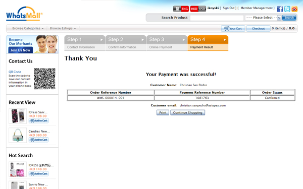 Confirmation email will be send to your registered email address. You may also find the purchase record online after sign in your buyer account (please refer to 'How can I view my purchase history').